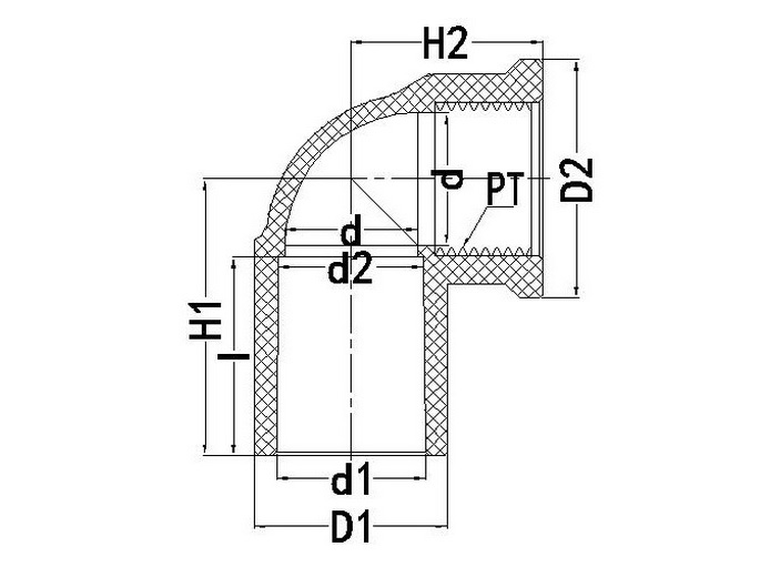 SIZE d1 d2 I D1 D2 d H1 H2 PT(牙/寸)